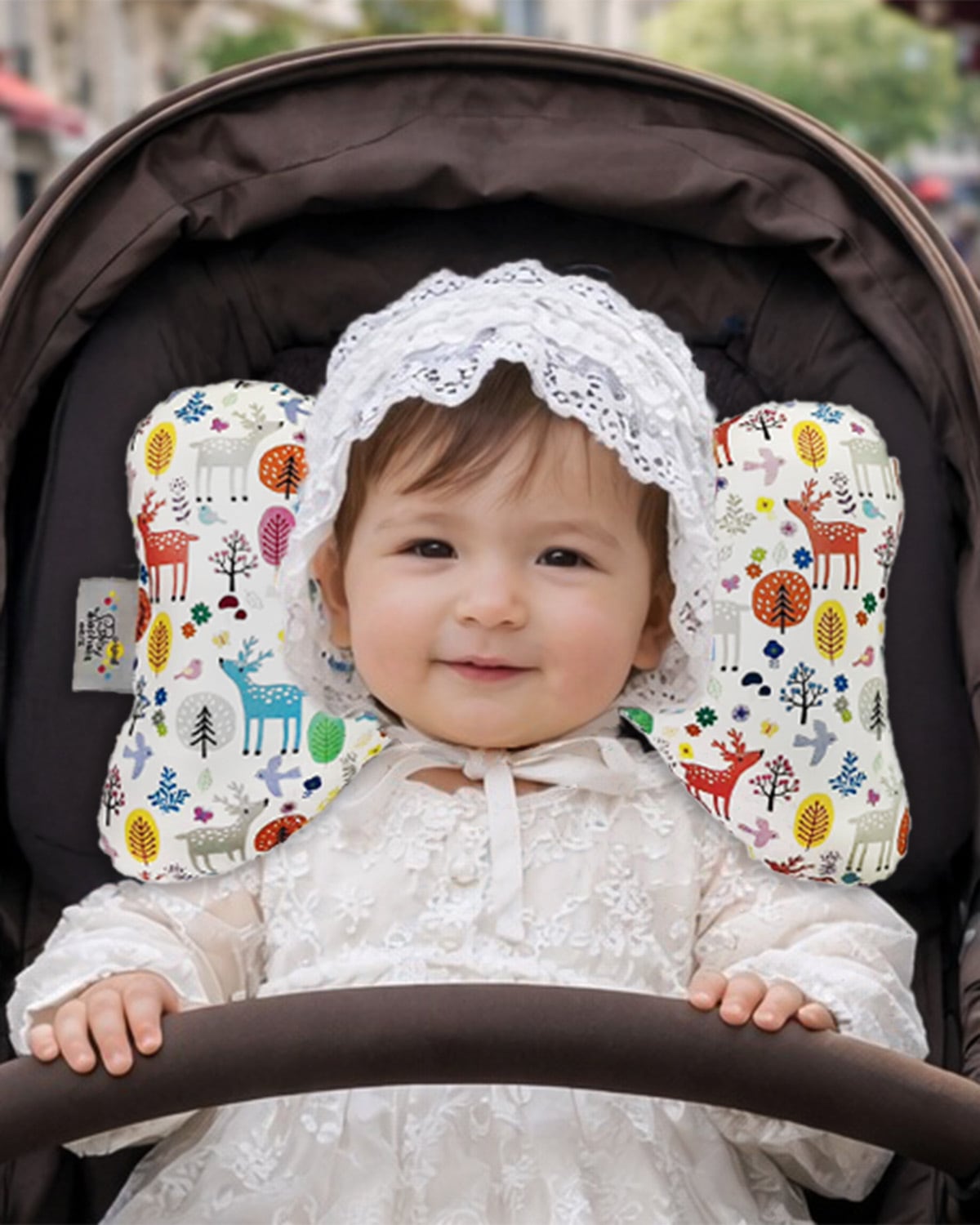 赤ちゃんの頭部をやさしく包み込みながらしっかり安定させ、首への負担を軽減。ベビーカーでの移動中も、自然で快適な姿勢をキープします。